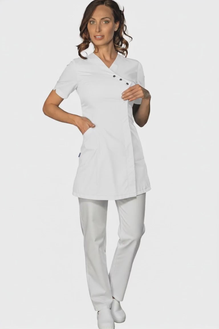 La Minorca è una ottima scelta per un look professionale e sofisticato! E' in misto cotone ed è perfetta per receptionist e assistenti ai dentisti. Ma anche per ogni ambiente farmaceutico e sanitario. Garantisce un aspetto elegante e professionale ed il misto cotone offre comfort e traspirabilità per tutta la giornata.