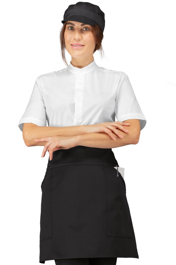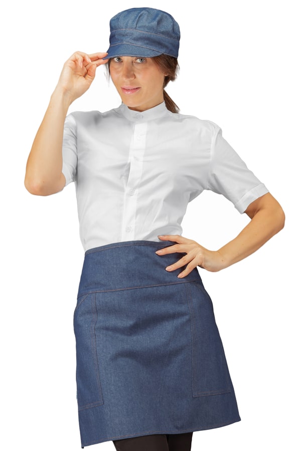 Grembile con 2 tasche laterali con apertura diagonale. Molto pratico per blocchetti comande, ordini, penne, tablet e cassa. Realizzato sia in polycotone che cotone jeans.