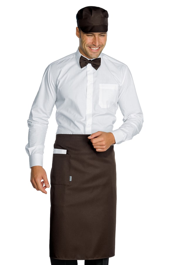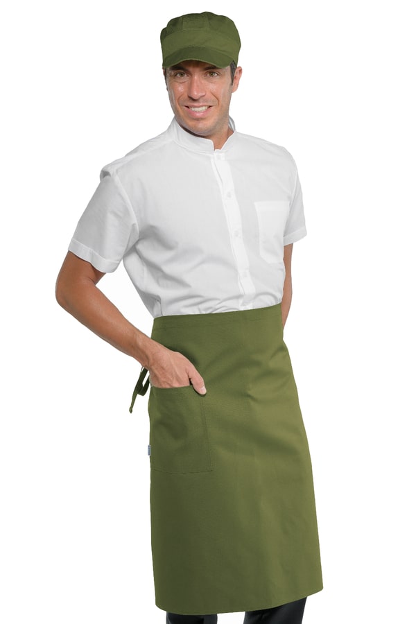 Grembile con 1 tasca sul lato destro. Molto pratica per blocchetti comande, ordini, penne, tablet e cassa. Ha una fettuccia sottile e lunga. Realizzato in misto cotone, quindi stirofacile e assorbente.