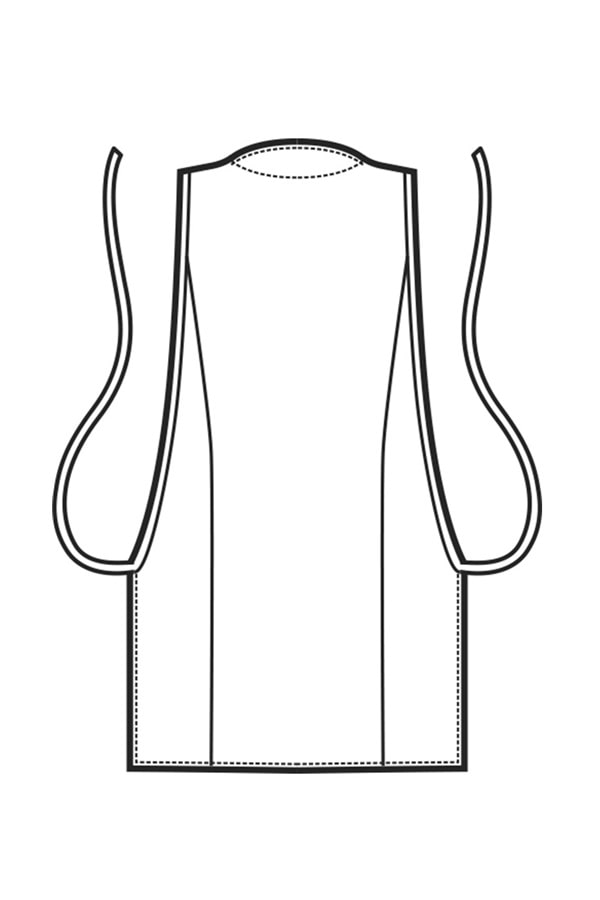 Si indossa dall'alto e si chiude dietro come un grembiule. Copre tutta la parte anteriore e la schiena fino ai fianchi.