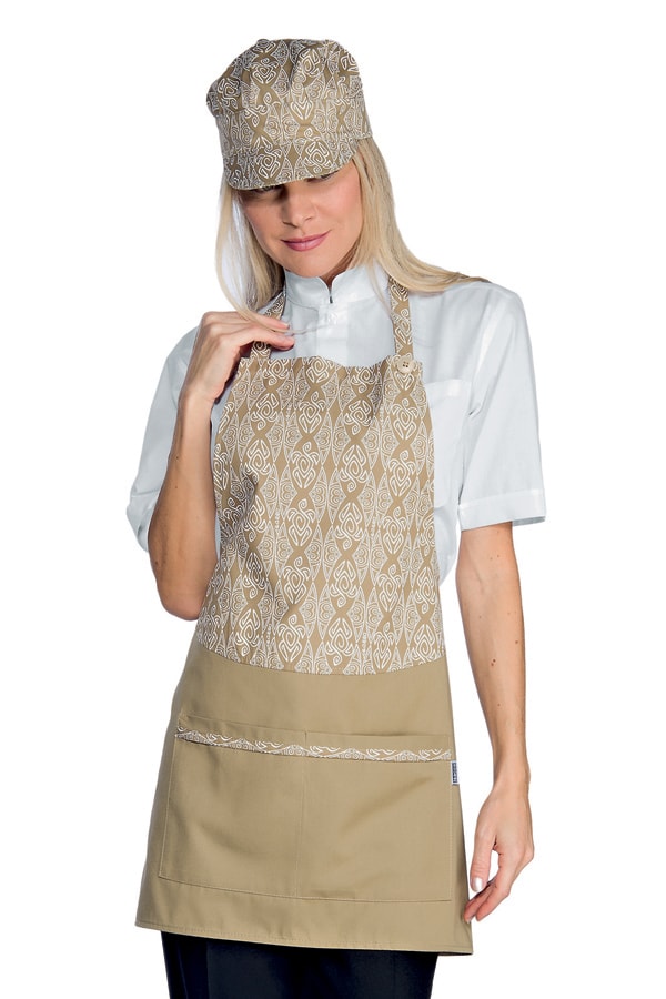 Dotato di 2 ampie tasche anteriori centrali in basso e di bottoni di regolazione sulla fettuccia sul collo. La fettuccia del collo è molto leggera e comoda da indossare