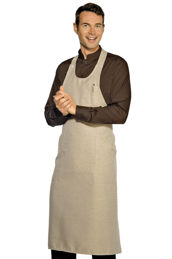 Il Sommelier è un elegante grembiule avvolgente e funzionale, dotato di 2 bottoni di regolazione sul collo, taschino penne e grandi tasche frontali nella parte bassa. Ideale per gelaterie, negozi, bar bistro e ristoranti.
