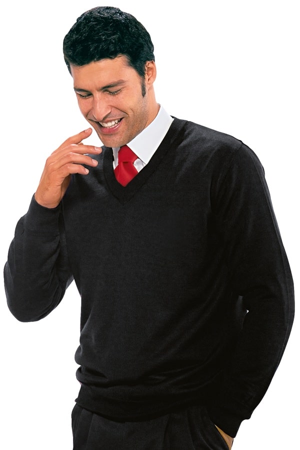 Di eccellente fattura questo maglioncino collo a V è unisex, ha un ampio collo con bordo piatto rinforzato ed è elasticizzata e resistente grazie alla composizione Lana misto acrilico. Si stira facilmente non fa pilling e dura nel tempo. Ideale per uffici, reception e molteplici contesti di lavoro aziendali e di rappresentanza. Disponibile in 2 colori.