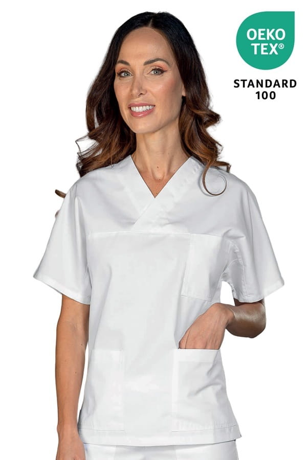 La Casacca a collo a V Collo-V bianca è indicata per professionisti del settore ospedaliero, estetico e sanitario. E' Unisex e a mezza manica, per il massimo comfort. Ha 2 tasche ed un taschino al petto per un pratico utilizzo. Ideale come divisa da lavoro per infermieri, garantisce funzionalità e praticità di utilizzo.